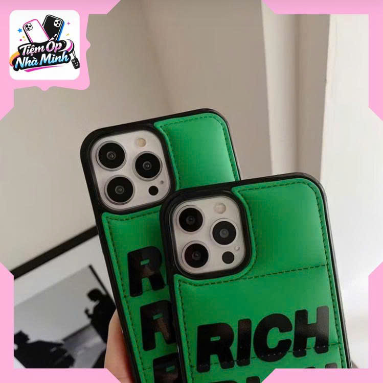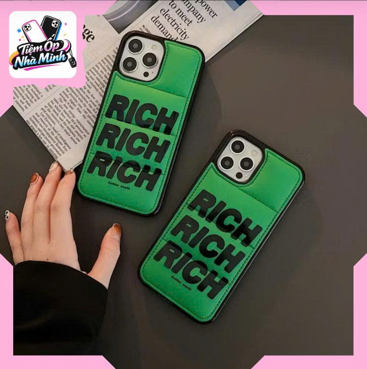 Ốp Rich Xanh – Phong Cách Street mang thiết kế chữ RICH in lớn đầy cá tính, kết hợp với nền xanh nổi bật tạo cảm giác năng động, thời trang và khác biệt. Mặt lưng được hoàn thiện mịn, giúp cầm chắc tay, không trơn trượt và không bám mồ hôi, giữ cho điện thoại luôn gọn gàng khi sử dụng.